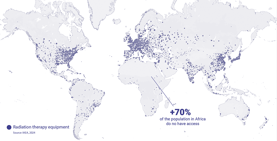 Over 70% of the population in Africa does not have access to radiotherapy. This is largely because of the enormous lack of radiation medicine equipment and specialists trained in radiotherapy in the region.